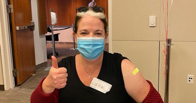 Tears of gratitude for the brilliant scientists who were able to develop a vaccine and get it approved in record time. Gratitude for the research scientists, production line workers, nurses, respiratory therapists, doctors, cafeteria workers, patient advocates, clerical workers, cleaning staff, pharmacists, supply chain workers, administrators, and those in the transportation industry who got the vaccine from an idea in the spring to a shot into my left arm.