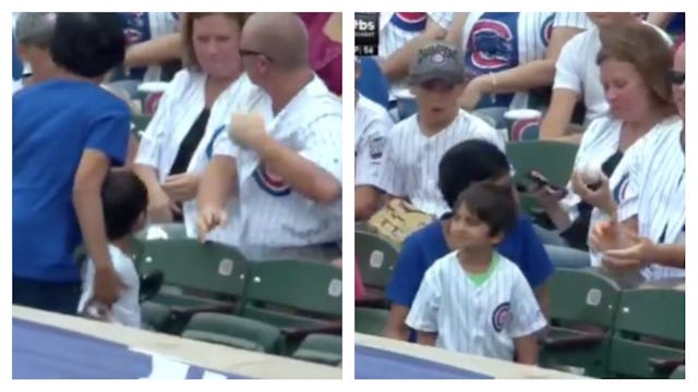 A Cubs fan picked up a baseball meant for the little boy in front of him — but all wasn’t as it seemed