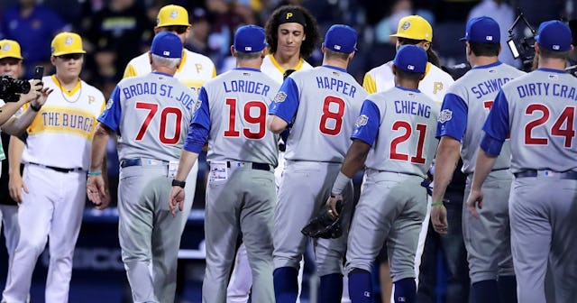 After the Chicago Cubs and Pittsburgh Pirates finished their game Sunday night, the team lined up and shook hands. And it was truly a sight to behold.