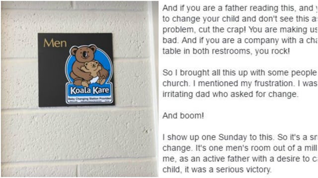 “I show up one Sunday to this. So it’s a small change. It’s one men’s room out of a million. But for me, as an active father with a desire to care for my child, it was a serious victory.”