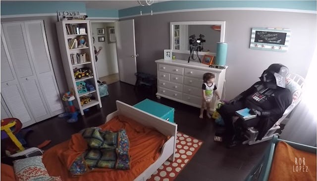 Self-proclaimed nerd dad Rob Lopez thought he’d have some fun with his two-year-old son on May Fourth, aka Star Wars Day, aka May the Fourth Be With You! After securing permission from his wife to potentially scar their child for life, the Star Wars fan and clearly committed dad donned an impressive Darth Vader costume and woke up his son, in full character.