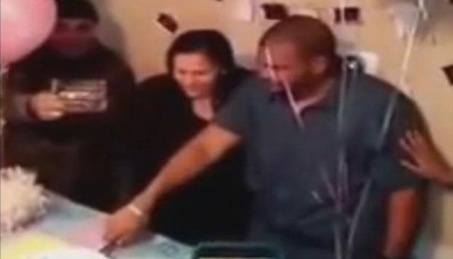 Surrounded by family, Pena cuts into the cake, sees the telltale blue and promptly falls to the floor. His wife and family rush to his aid and the video ends but we saw what we needed to see. This dad was so excited to have a son he literally passed out.