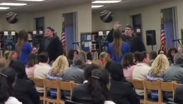 This dad acting menacingly toward a teenager to show the reason why teachers should be allowed to carry guns and the whole scenario perfectly demonstrated why they shouldn’t. Average citizens with no law enforcement training shouldn’t be the ones to step up and intervene with a weapon if something goes down. All of those parents staying planted in their seats while shit went down proves it.