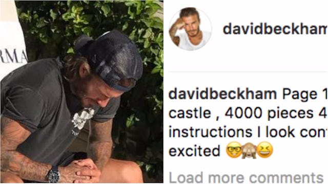 Beckham, husband to Victoria Beckham, the best Spice Girl (come at me), shared a photo on Instagram of his ridiculously perfect-looking self puzzling over the “490 pages” of instructions for building a Disney LEGO castle. The monstrous structure is presumably for his youngest child, Harper, who turned six last month.