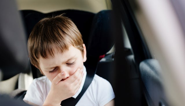 But other times we haven’t been so lucky. There was the chicken nugget resurface of 2011 that is still seared into my memory six years later. And I swear, despite washing the car seat and wiping down the straps, I can still see stains from the milk incident of 2014. Recently, one hour into a long road trip, this same child started getting really pale and really quiet. My own puke history clued me in to what was happening. We were on the freeway in the middle of nowhere, and we had to sit on the side of the road for 20 minutes so he could breathe some fresh air. Car sickness can make an already annoying road trip seem like hell on earth.