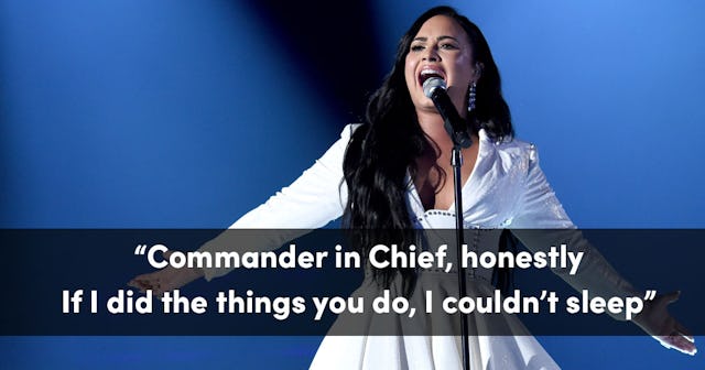 Every day in the Trump administration is a damn shit show. When he’s not appointing conservative supreme court justices who want to roll back abortion protections, he’s shouting out white supremacists or playing “Macho Man” at a giant rally in the middle of a global health crisis. The president is trash and although many celebrities have spoken out about the man and have been urging their followers to vote all month long, Demi Lovato took it one step further and penned a diss track. Well, a diss ballad to be more specific.
