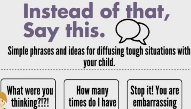 First of all, even if you stare at this thing for several hours and study like it’s college all over again, the chances that you’ll remember these substitute phrases when they’re needed is slim to none. When you’re overheated and irrational, being gentle is the furthest thing from your mind.