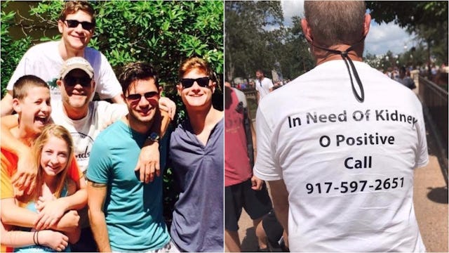 After waiting for years for a kidney donation, a father of five decided to make a t-shirt pleading for help. Then he wore it to Disney World, where a fellow theme park guest snapped a picture and shared it online. Their story has gone viral, and we’re hoping it ends with a new kidney for Robert Leibowitz.