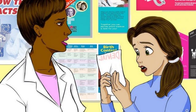 “Together we did a series of the princesses going to the gynecologist as a reminder to make annual appointments and to try to combine familiar pop culture with an important message,” Sepulveres told Scary Mommy. Their new project picks up where the last one left off: The princesses are seeing their doctors and gynecologists, but this time, there’s no Affordable Care Act, and the princesses aren’t able to access the same care they could before.