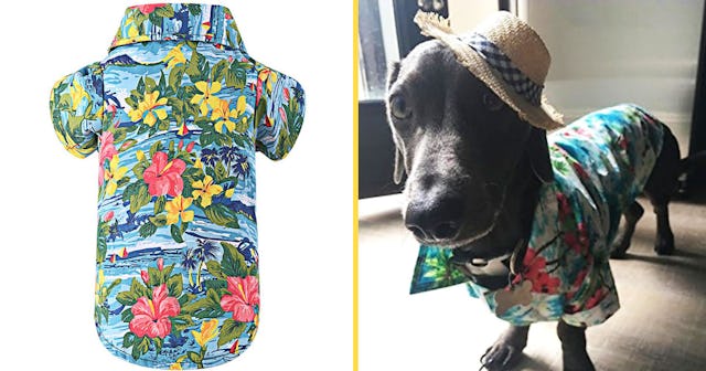 Amazon is a treasure-trove of strange dog clothing (like these “mermaid” life vests), and trust us when we say that your dog definitely wants to wear a Hawaiian-print shirt this summer.