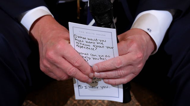 Trump had notes on how to respond to survivors and their families — the internet noticed