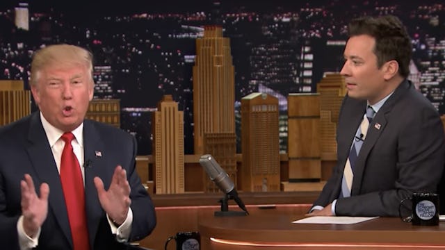 The rant was in reference to a September 2016 interview on The Tonight Show, in which Jimmy Fallon was criticized for giving the president softball questions, ignoring the candidate’s problematic aspects, and generally being too welcoming and warm to Trump during the show without bringing up any hard topics. Most notably, Fallon warmly mussed trump’s hair during the segment–to huge applause.