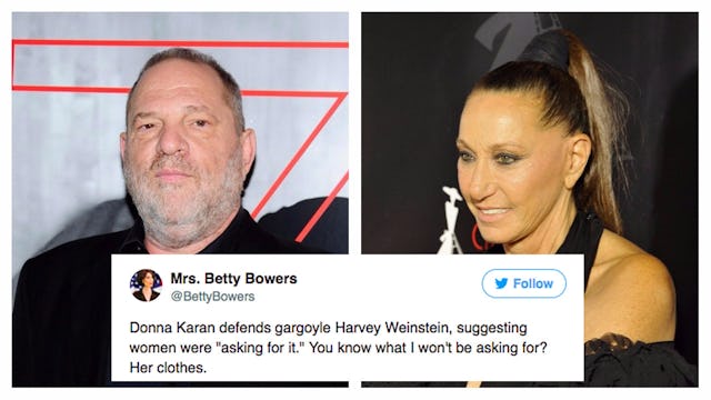 Karan’s business is built on making clothes for women. And she’s one of the first people to openly defend Weinstein’s actions.
