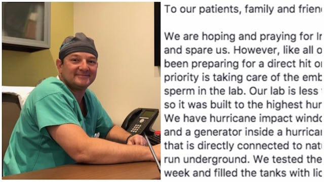 As Florida braces for Hurricane Irma, hundreds of thousands are evacuating to safety. But that’s not an option for one fertility doctor, who’s sticking around to protect his practice.