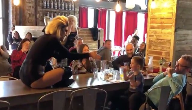 Drag performer Marti Gould Cummings was hosting a drag brunch at Talde, a New Jersey restaurant, over the weekend and decided it was time to play drag roulette, a game where they ask the audience to choose songs. They posted the video to social media, saying, “When a 2 year old comes to brunch you perform baby shark for them!!!”