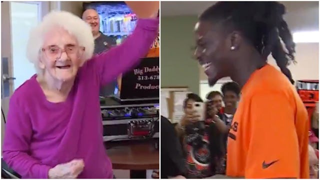 On Thursday, Bengals cornerback Dre Kirkpatrick decided to throw a tailgate party at Loveland Health Care Nursing & Rehab Center. He brought along a DJ, games, and some treats for a fun, low-key day. What he didn’t count on was an epic dance battle between himself and 95-year-old resident Irma Shafer. Prepare for the best video you’ll see today.