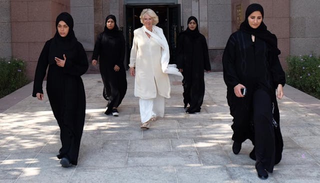 In a powerful viral photo, an all-female protection team flank British royal the Duchess of Cornwall, formerly known as Camilla Parker-Bowles, during a trip to the United Arab Emirates. The visit was part of a Middle Eastern tour with husband Prince Charles, as they visited Dubai, Abu Dhabi and Al Ain.