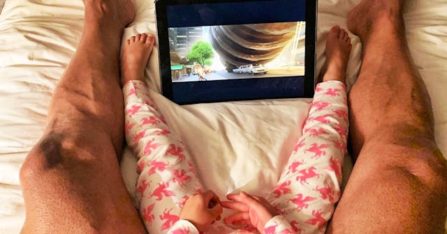 Whether it’s Frozen (in my case), Boss Baby (also me), or The Dog Who Saved Christmas (me again, and hopefully for your sake, only me), most of us have experienced the simultaneous pain and pleasure of cuddling up with our spawn to watch that movie for the 532nd time. As demonstrated by the beyond cute photo of Dwayne’s daughter cuddled between his magnificent muscles, there is nothing sweeter in life than those before bed snuggles with your little person — even if it means hearing Idina Menzel belting out “Let it Go” for the umpteenth time.