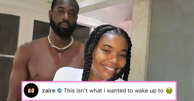 “This isn’t what i wanted to wake up to,” Dwyane’s 18-year-old son Zaire wrote, adding the barf face emoji for effect.