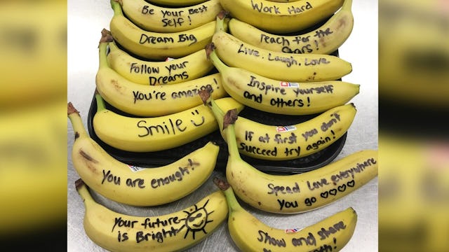 School Cafeteria Worker Writes Positive Messages To Students -- On Bananas