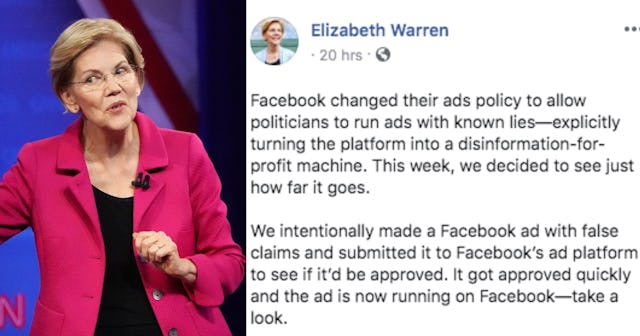 Warren’s campaign ran an intentionally fake ad to prove a point about Facebook running misinformation