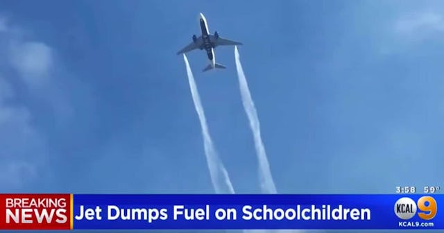 Videos show the plane dropping fuel over a playground full of kids as it heads back to LAX to make an emergency landing