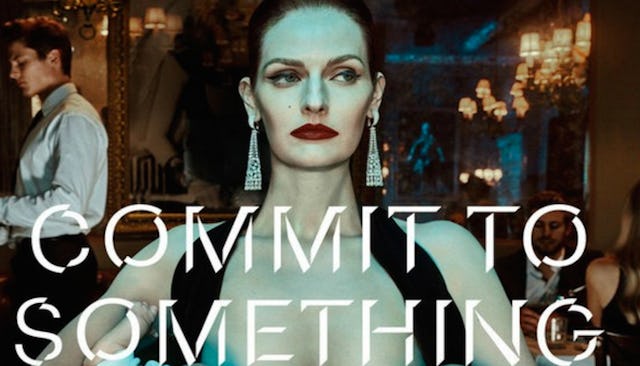 The ad is one of seven in the campaign — others depict a “cat lady” and a male cheerleader — and features model Lydia Hearst, who is not actually a mom, “breastfeeding” two frighteningly life-like fake babies. Hearst glares icily around her as she mimics feeding the babies, and stamped across the photo is the company’s latest slogan, “Commit to something.”