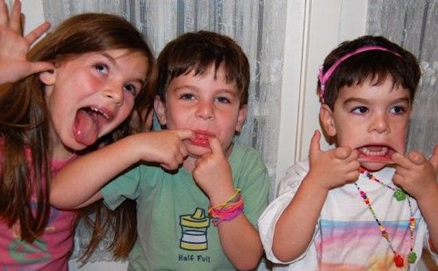 Her boys glanced at my boys and you could almost see the inner struggle, complete with cartoon bubbles and devils drawn on their shoulders. They started to inch over and their mother shot them a glance and slightly pursed her lips. They immediately shuffled back in line and just… stood. My children, clueless to what had just transpired, continued shrieking and opening and laughing.