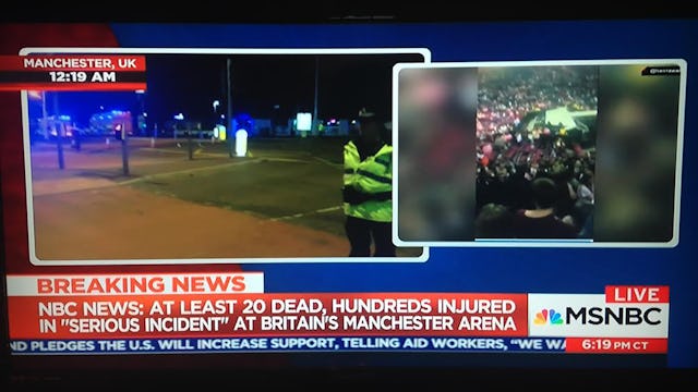 “Emergency services are currently responding to reports of an explosion at Manchester Arena. There are a number of confirmed fatalities and others injured,” Greater Manchester Police said in a statement posted on Twitter. “Please AVOID the area as first responders work tirelessly at the scene. Details of a casualty bureau will follow as soon as possible.” MSNBC just updated 22 dead, 59 injured.