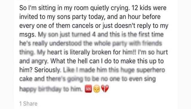 When No One Shows Up For A 4-Year-Old's Birthday, Facebook Mom Group Steps In To Help