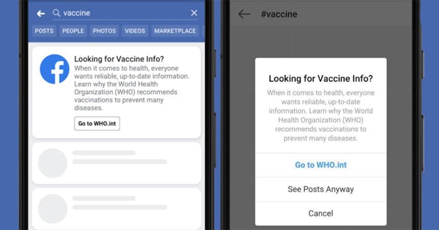 There will be informational pop-up windows on everything anti-vaccine related on Facebook and Instagram