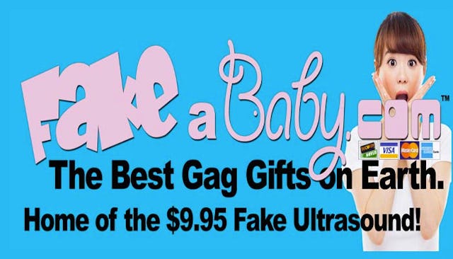 Fake-A-Baby.com claims to be home of the “best gag gifts on earth.” It’s specialty item appears to be the “$9.95 Fake Ultrasound.” The site also offers items like fake prosthetic bellies, fake proof of pregnancy documents, and something the site calls “fake pregnant boobs.” Yes, this is real.