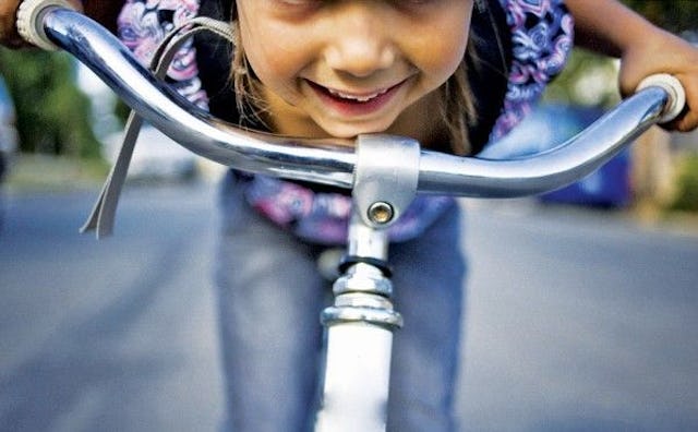 Watching her, I started to wonder if I’ve been missing something. She looked so proud and independent and suddenly family cycling visions started filling my head. The five of us, donning spandex shorts and sneakers picnicking at some national park on a Sunday afternoon. Bonding while wearing matching bike helmets and coordinating sweatshirts. Biking down to Starbucks for coffee and feeling the burn in my thighs. Actually, having definition in my thighs. Could that be us? Be me?