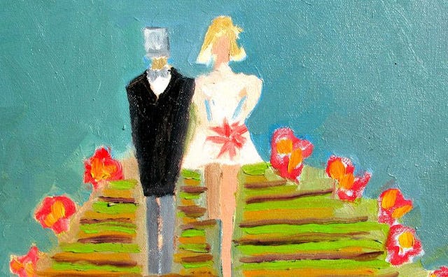 One of the joys of my married life was how easy things were between P and my mother. For someone who had made a string of questionable choices in love, she had been tough on my previous boyfriends. They were either “spiritually young,” “lacking gravitas,” or “small in their outlook.” But she sometimes praised P to the point where it got annoying. “He has such a fine mind,” she would say. “Of course he’s clever but he’s more than that. He’s an original thinker. So few people are original, darling.” As her own fine and original mind began to come apart, she would sit sipping sweet tea and talk to P about books. “P, which of Hawthorne’s Roman stories do you like the most?” Though he is the kind of man who looks like he could have read Hawthorne’s Roman stories, he hasn’t. But he is the kind of man who will ditch his afternoon plans to help out a childhood friend crying on a rock. He is also the kind of man who will stand on a table and yell at the top of his lungs to get the girl. He is the kind of man you are lucky beyond measure to have as a husband.