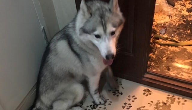 An Imgur user recently shared some hilarious photos showing what happened when a husky spent three hours prancing around in black ink while his owners were away at the movies. The husky apparently knocked over a bottle of “100 percent non-toxic” traditional calligraphy ink, and then pranced, pawed, and hoofed his way through his owners’ living space, leaving the kind of mess that would make Martha Stewart throw herself off a cliff. Seriously, look at this: