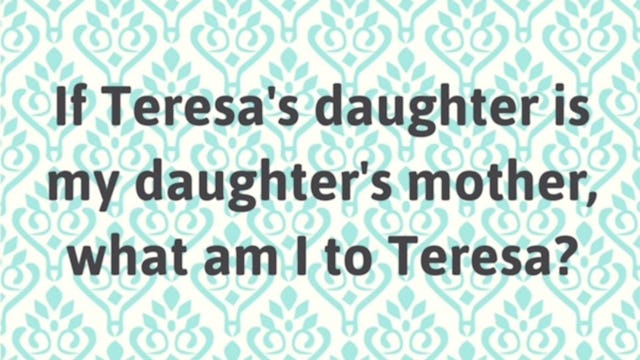 Depending on who’s asking the question, the answer could also be daughter-in-law or son-in-law. “Either the speaker is the daughter of Teresa or the speaker is married to the daughter of Teresa,” one person wrote on Facebook. Another pointed out, “That’s all well and good if the kid only has one parent. But since she also has a dad, why couldn’t it be Teresa’s son-in-law?”