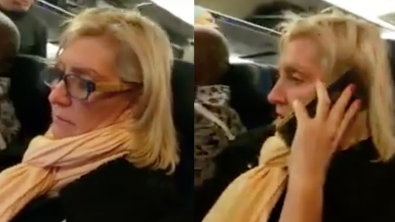 The woman’s abominable behavior is tolerated for a few minutes by her seatmates and fellow passengers – someone even offers up an empty seat – but not for long.