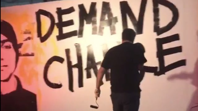 Over the weekend, Manuel Oliver grabbed a can of black paint and created a powerful tribute to his son — and Parkland shooting victim — Joaquin. The father drew a portrait of his 17-year-old son alongside the words: “We Demand Change.” A video of him creating the mural has since gone viral and serves as yet another reminder that we need sweeping gun control legislation immediately.