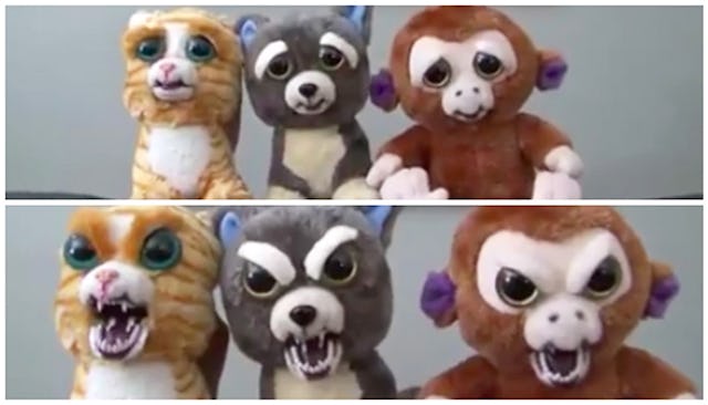 They are tiny little stuffed animals that appear as harmless and cuddly as any plush doll, but there’s a twist. The adorable little cat, or bunny, or monkey, or polar bear you gifted to the light of your life is easily transformed into a bloodthirsty predator the minute the kid acts up! Check out this terrifying video to see them in action.