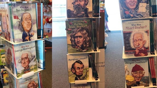 This is not okay. This book series—Who Was—is diverse and offers a plethora of books about both men and women of all colors and ethnicities. Seeing a book rack stacked so heavily with white male faces in a place that’s supposed to be forward-thinking, in a place that’s supposed to inspire all of our children to imagine how they can impact the world, is not okay.