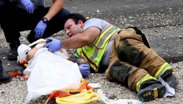 Can we take a minute to appreciate how amazing first responders are? They’re with people at some of the most frightening, vulnerable moments of their lives. When you see someone like Lessard, who not only does his job but does it with compassion — it’s truly touching. We forget how important the role of first responders is until we need them. And it’s not just hired first responders included in this list — it’s anyone who feels compassion for their fellow humans and stops to help when they witness any sort of trauma.