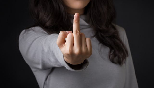 So maybe my “fuck you” digit gets the message across — or maybe it doesn’t. The point is it makes me feel a whole lot better, and it lets you know that I’m not amused or flattered by your bullshit. I don’t use it to tell you my feelings are hurt or I can’t handle what you are saying. The one-finger salute is used in lieu of wasting my breath. I don’t have to explain myself to anyone, especially someone who thinks yelling lewd remarks or telling me how to act is socially acceptable. So don’t be afraid to use that middle finger, ladies. It’s empowering.