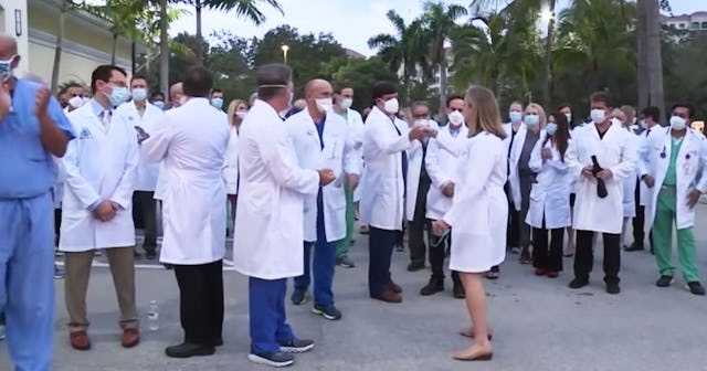 Roughly 75 doctors from nearby hospitals and offices stepped outside the hospital doors in an attempt to encourage local community members to get vaccinated. Local NBC affiliate WFLA reported that the doctors were not on duty at the time, gathering either before or after their shifts — and they’re pleading with people to just get the vaccine as quickly as possible.