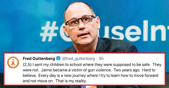 Guttenberg was just 14 years old when she was shot to death at school, a place where her father said every child should feel protected. “I sent my children to school where they were supposed to be safe. They were not. Jaime became a victim of gun violence. Two years ago. Hard to believe,” he continued in a series of tweets. “Every day is a new journey where I try to learn how to move forward and not move on. That is my reality.”
