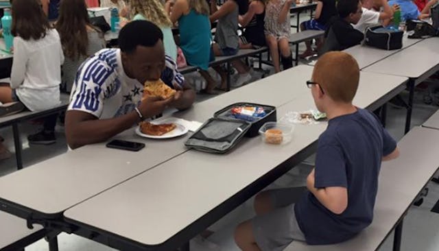 A college football player sat down to have lunch with a boy who has autism and a photo of them eating together is going viral. The child’s mom shared it on Facebook wanting to acknowledge how much the athlete’s small act of kindness meant to her.