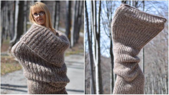 If the $280 price tag is simply a no-go for you, just safety pin together a huge blanket at a few key places, and you get the same effect. This is about hiding from all your troubles, and this tube scarf merely serves as glorious inspiration in that quest.