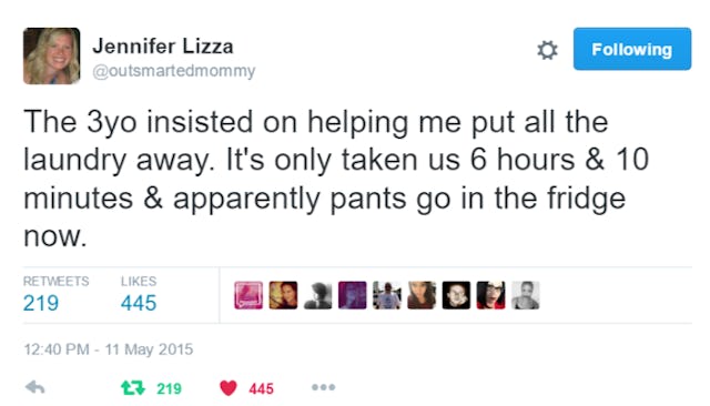 Before you have kids, you sit there all adorably pregnant folding teeny outfits and putting them in that as-yet-unscratched-by-evil-toddlers dresser in the nursery. You can’t possibly imagine how the care and keeping of those teeny outfits is going to monopolize your life for the next 18 years to come. But it will. Trust me. And don’t just take my word for it, let the funny parents of Twitter school you on the unrelenting hell that is laundry when you have kids.