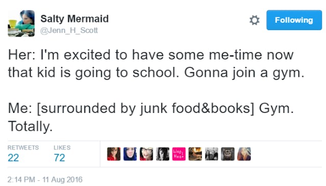 If you get a chunk of “me time” and go to the gym instead of eating an entire tray of brownies and bingeing on books I’m not sure we’re compatible as friends.