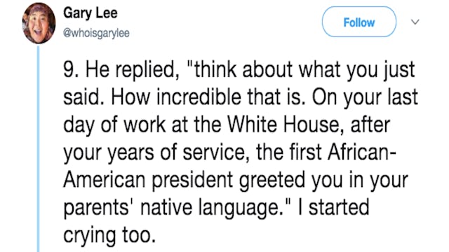Lee uses his last few tweets to explain exactly why the moment was so meaningful for the son of hardworking immigrants from Korea.