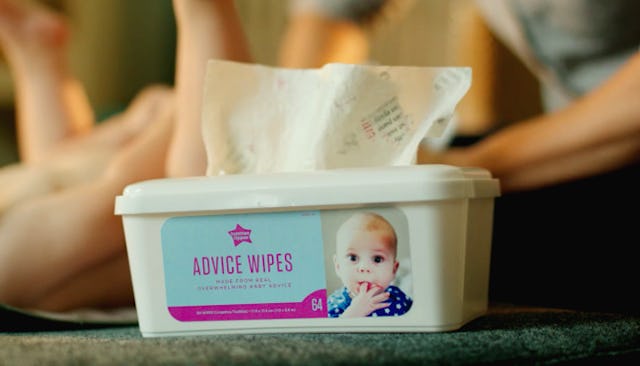 Tommee Tippee made a limited run of baby wipes with parenting advice plastered all over it. They’re called “Advice Wipes.”
